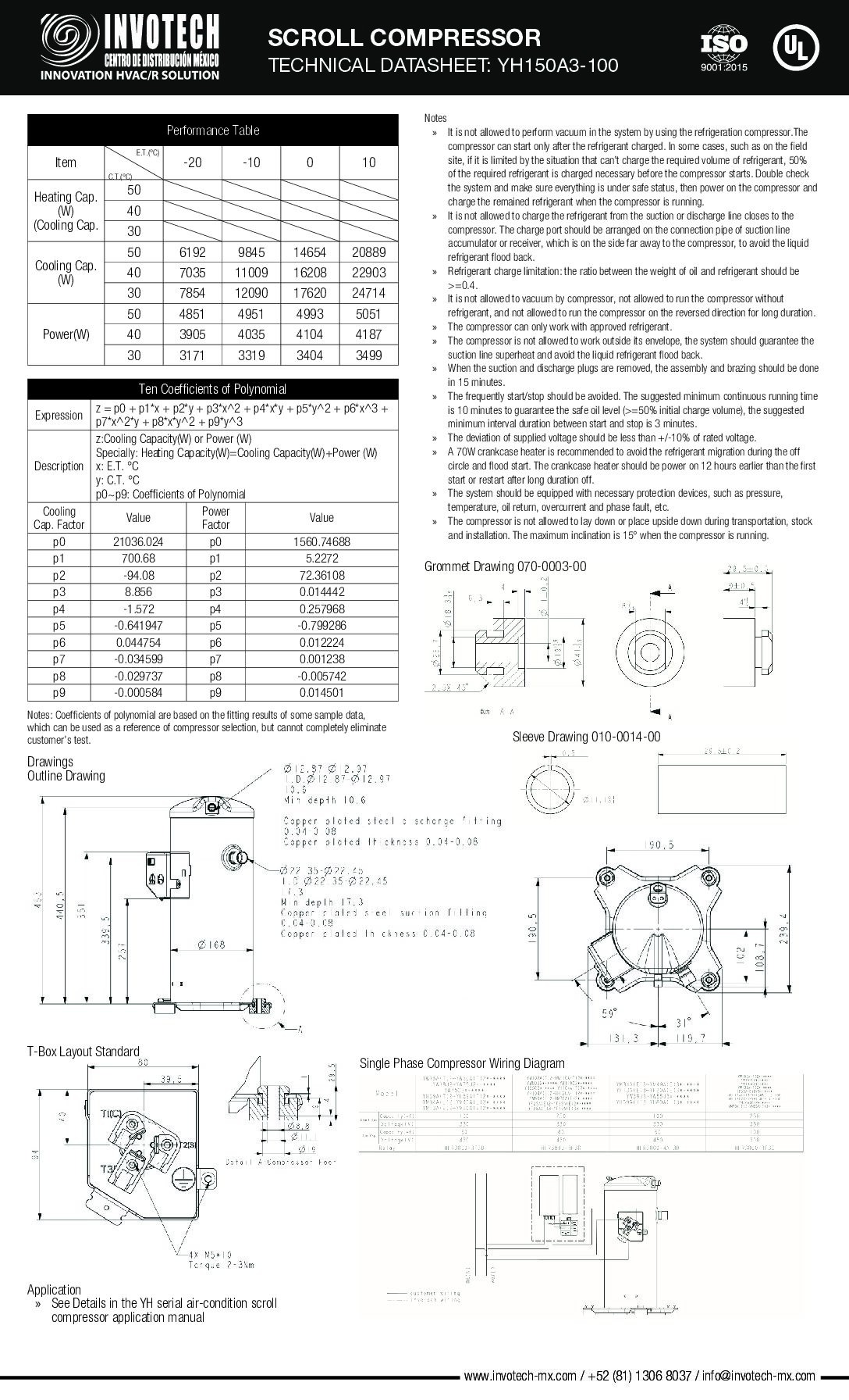 Compresor Scroll YH150A3-210 5 HP 220/1/60 R-22