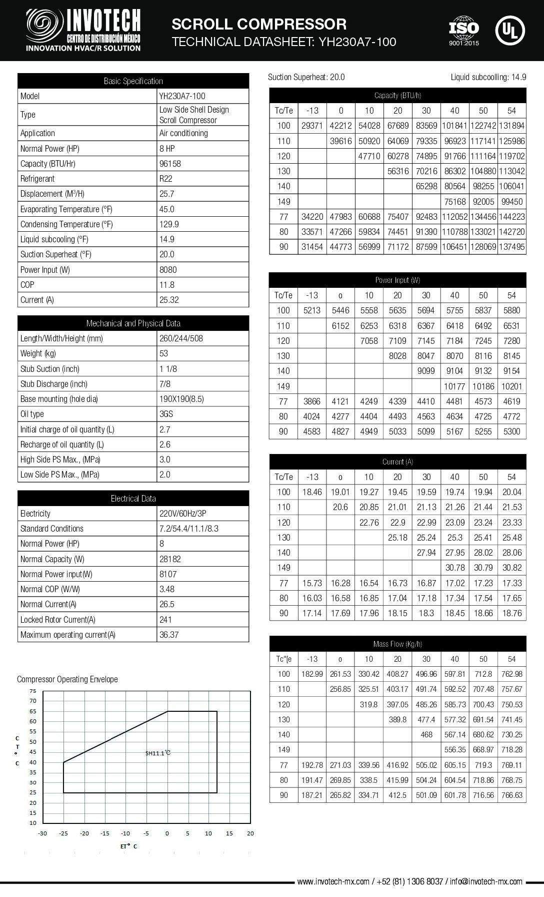 Compresor Scroll YH230A7-210 8 HP 220/3/60 R-22