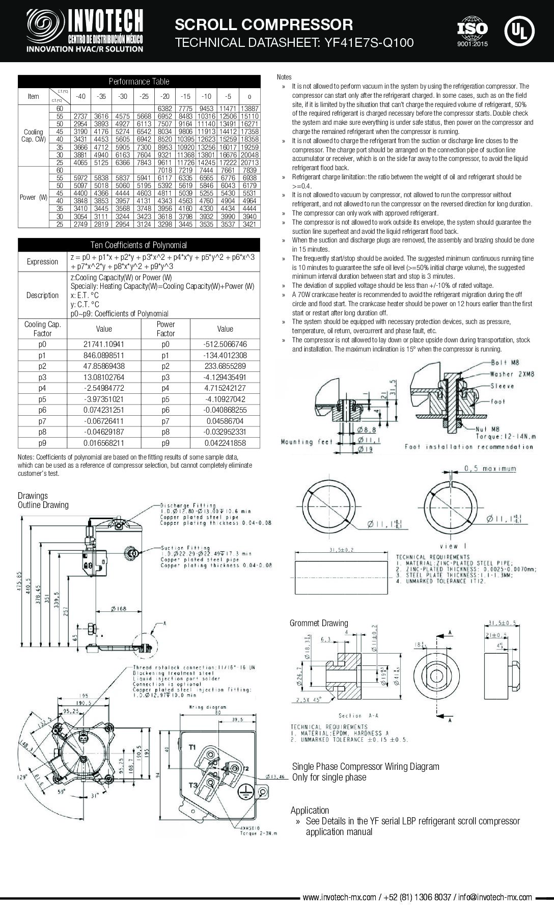 COMPRESSOR SCROLL YF41E7S-Q100 6HP-17,000 BTU/HR BAJA TEMP 220/3/60.