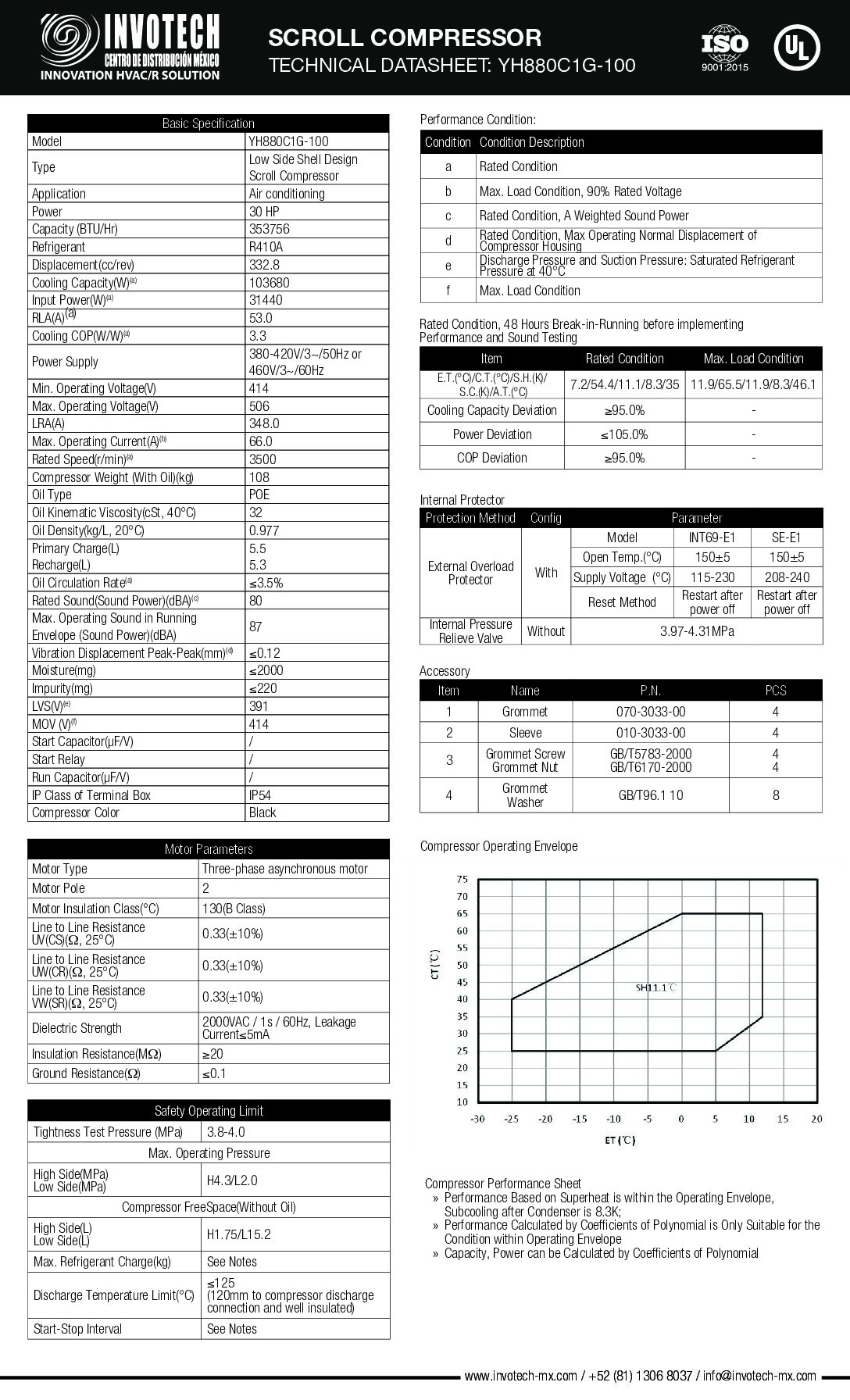 COMPRESSOR SCROLL YH880C1G-100 30HP-390,096 BTU/HR AC 460/3/60