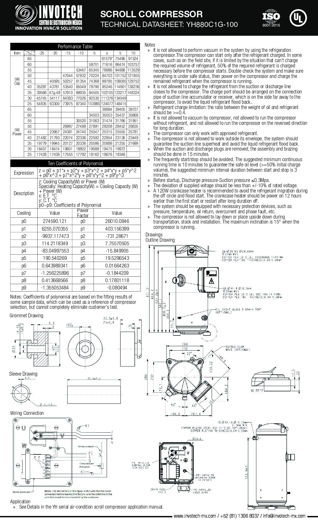 COMPRESSOR SCROLL YH880C1G-100 30HP-390,096 BTU/HR AC 460/3/60.