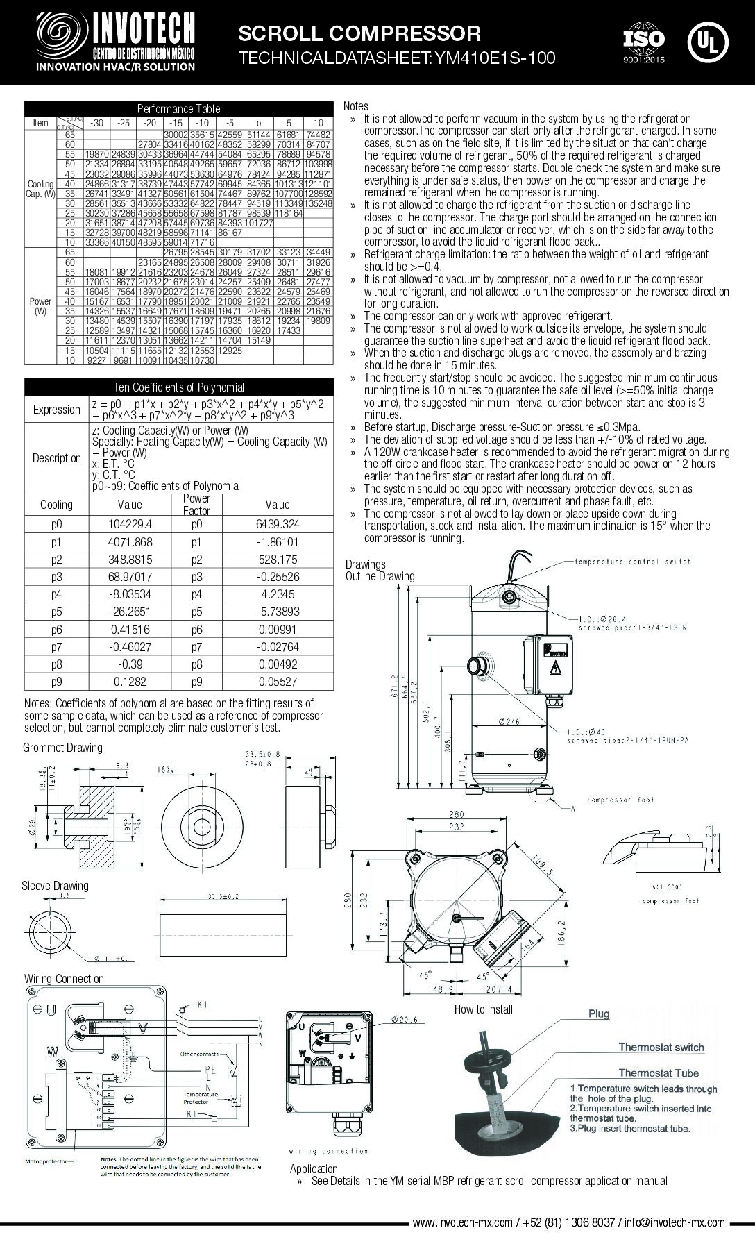 COMPRESSOR SCROLL YM410E1S-100 25HP-163,000 BTU/HR MED TEMP 460/3/60COMPRESSOR SCROLL YM410E1S-100 25HP-163,000 BTU/HR MED TEMP 460/3/60