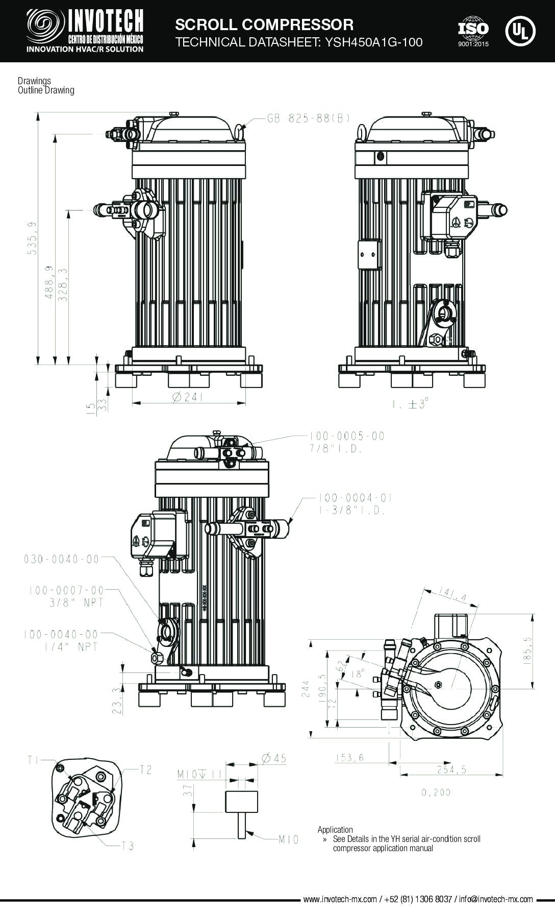 COMPRESSOR SCROLL YSH450A1G-100 COMPRESSOR SCROLL 15HP-192,000 BTU/HR A/C 460/3/60.