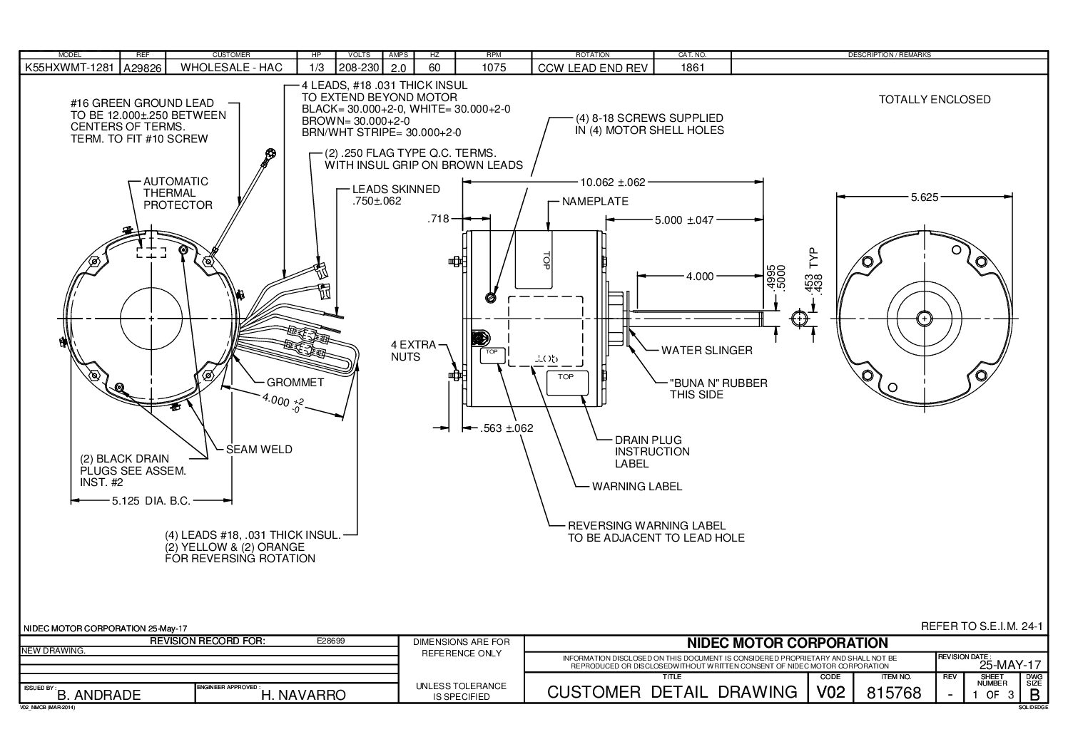 MOTOR MODELO 1861 1/3HP 208-230/1/60
