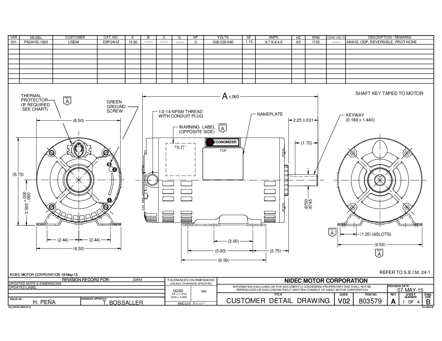 Sé el primero en valorar “MOTOR MODELO D3P2AHZ 3 HP 208-230/460/3/60”