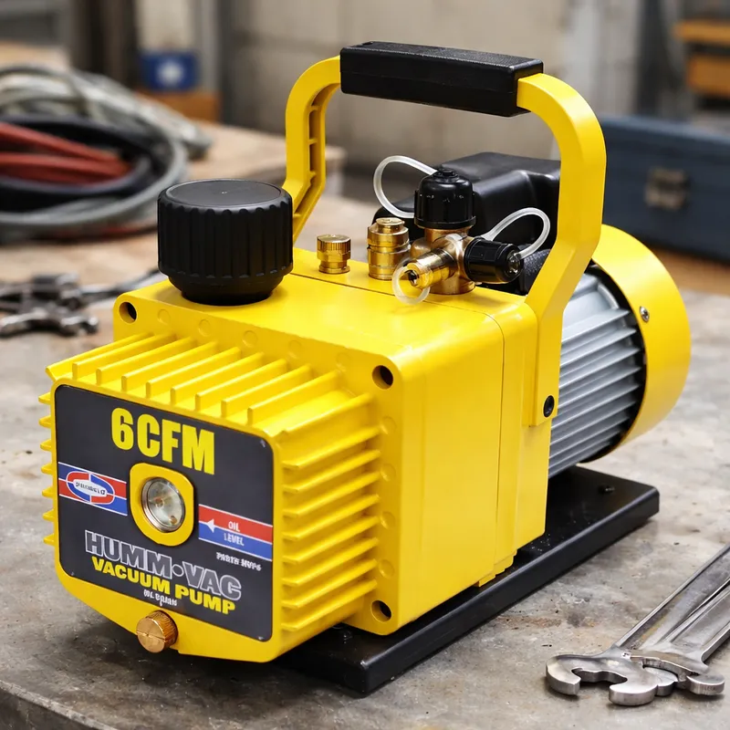 BOMBA DE VACIO 6 CFM HVP6 1/2HP UNIWELD 110V-220V/50-60HZ DESPLAZAMIENTO: 6.0 CFM, 170 Litros/min. ETAPAS: 2 etapas RENDIMIENTO: 15 Micrones CONEXIONES: 1/4”, 3/8” y 1/2” Flare Macho MOTOR: 1/2 HP VOLTAJE: 110V/220V – 50Hz/60Hz CAPACIDAD DE ACEITE: 27.1 oz. (800 ml) Las bombas HUMM-VAC® de Uniweld eliminan la humedad y deshidratan un sistema de manera rápida y eficiente. El chasis resistente totalmente metálico y el motor de voltaje dual son potentes y silenciosos. Su diseño ergonómico y peso liviano hacen que estas bombas sean una excelente opción para el trabajo. La bomba de vacío funciona en dos etapas para lograr una presión muy baja. En la primera etapa, se eliminan los gases y vapores más pesados y densos del sistema, mientras que en la segunda etapa se eliminan los gases y vapores más ligeros, logrando así una significativa eliminación de aire y humedad del sistema.