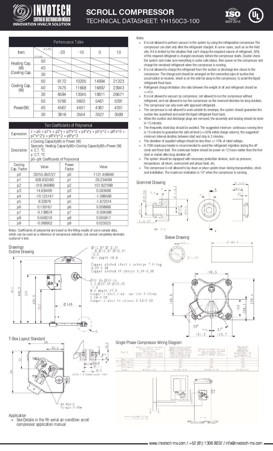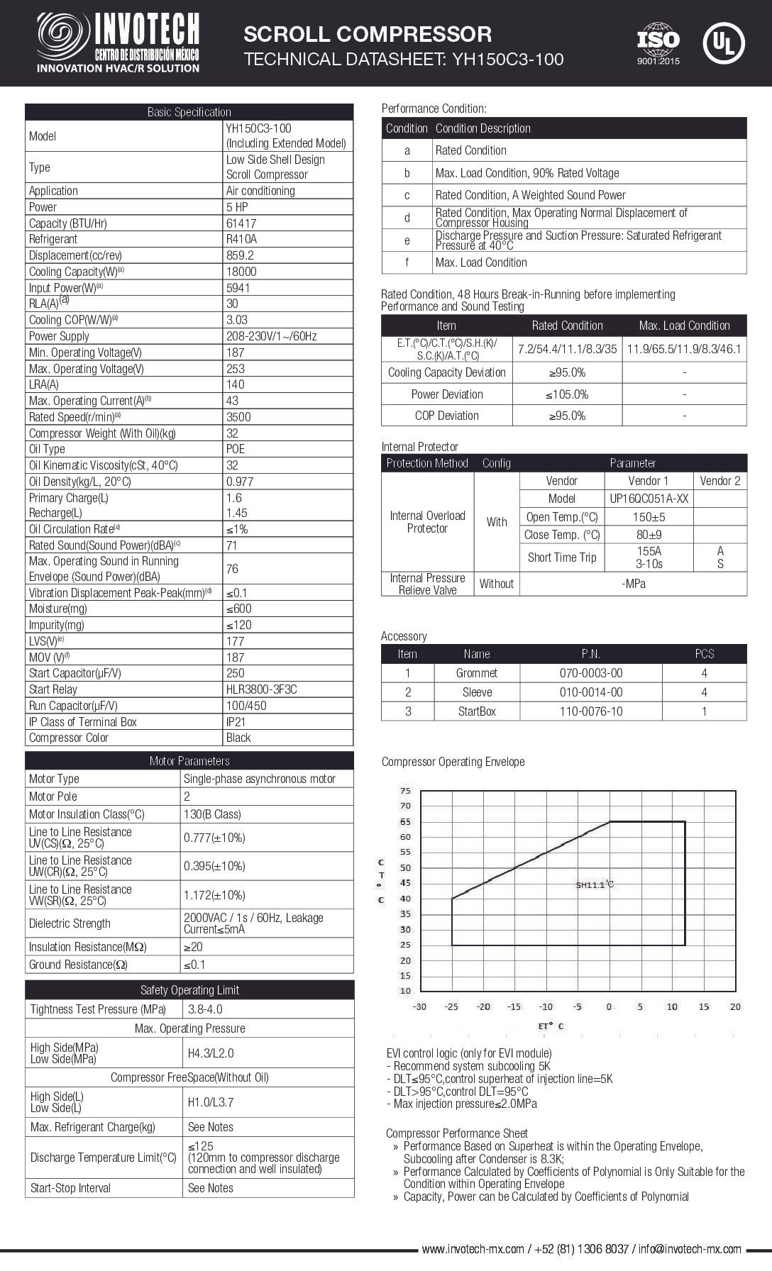 Compresor Scroll Invotech YH150C3-210 5hp A/c 220/1/60 R410a