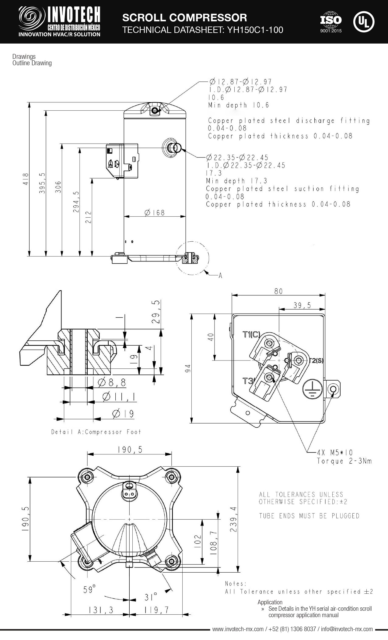 Compresor Scroll YH150C1-210 5HP A/c 460/3/60 R410