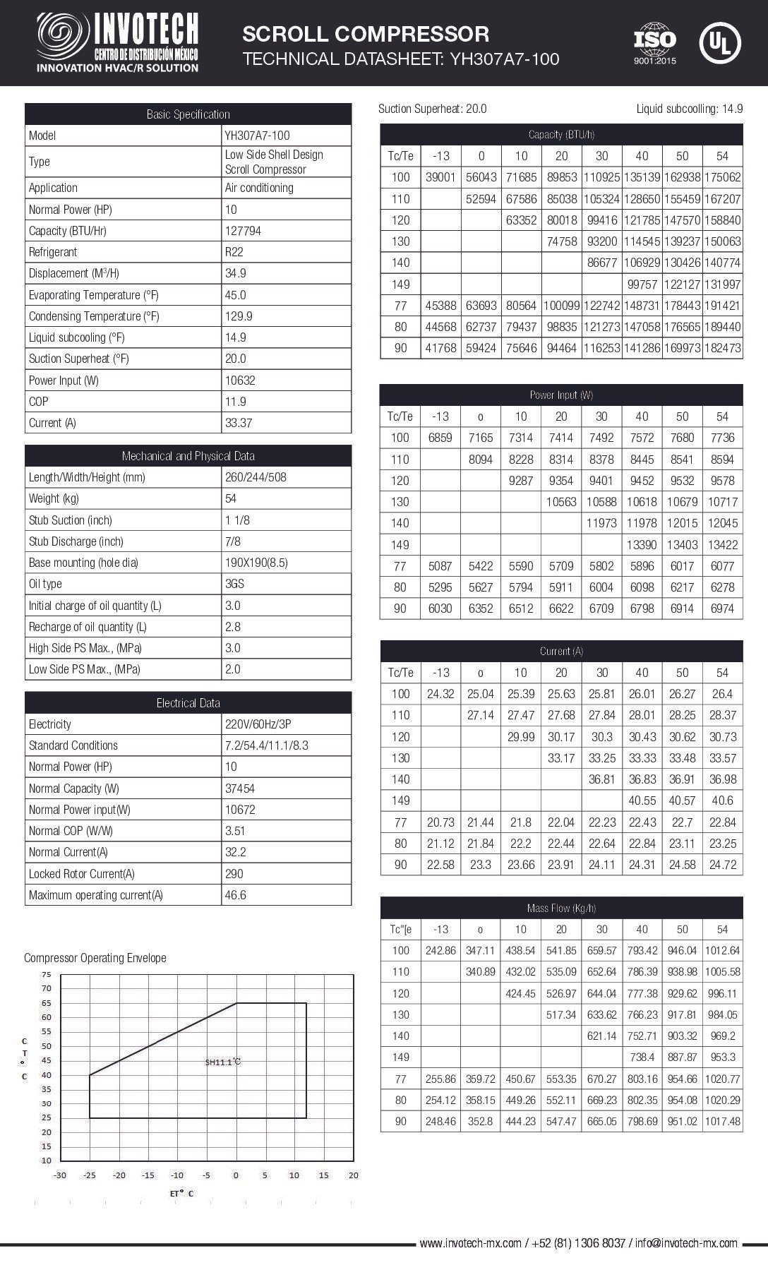 Compresor Scroll YH307A7-210 10hp 220/3/60 R22