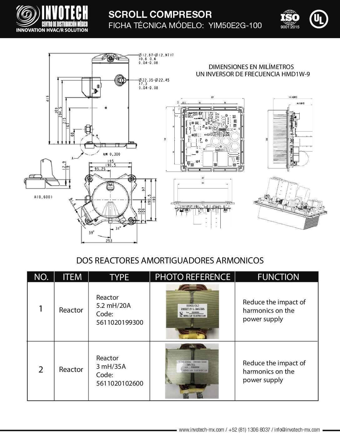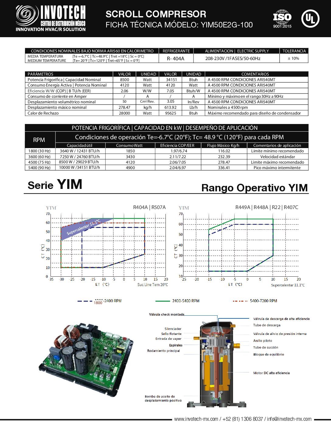 Compresor Scroll YIM50E2G-100 | 2HP | Tecnología INVERTER | Media Temperatura | 220V/1/60