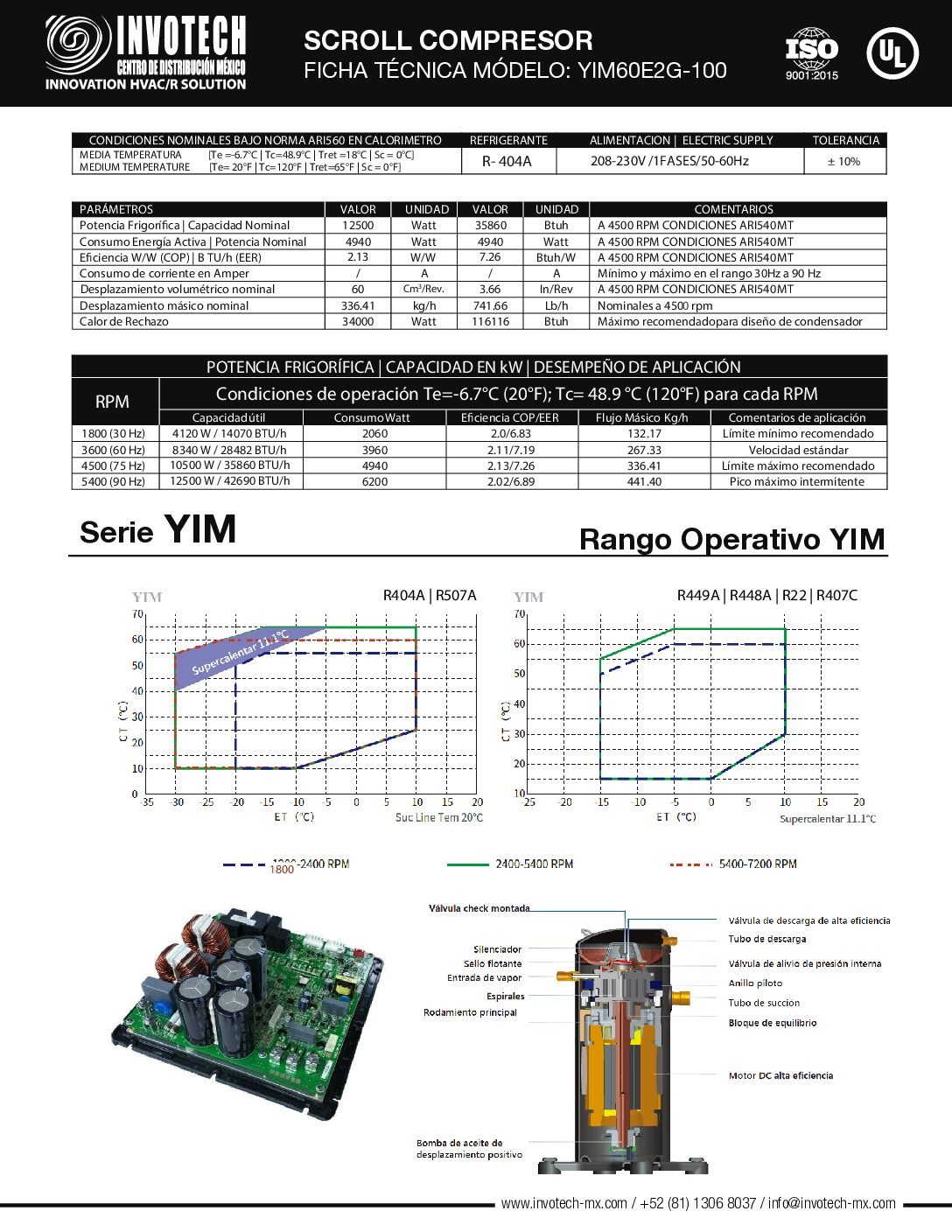 Compresor Scroll YIM60E2G-100 | 2HP | Tecnología INVERTER | Media Temperatura | 220V/1/60