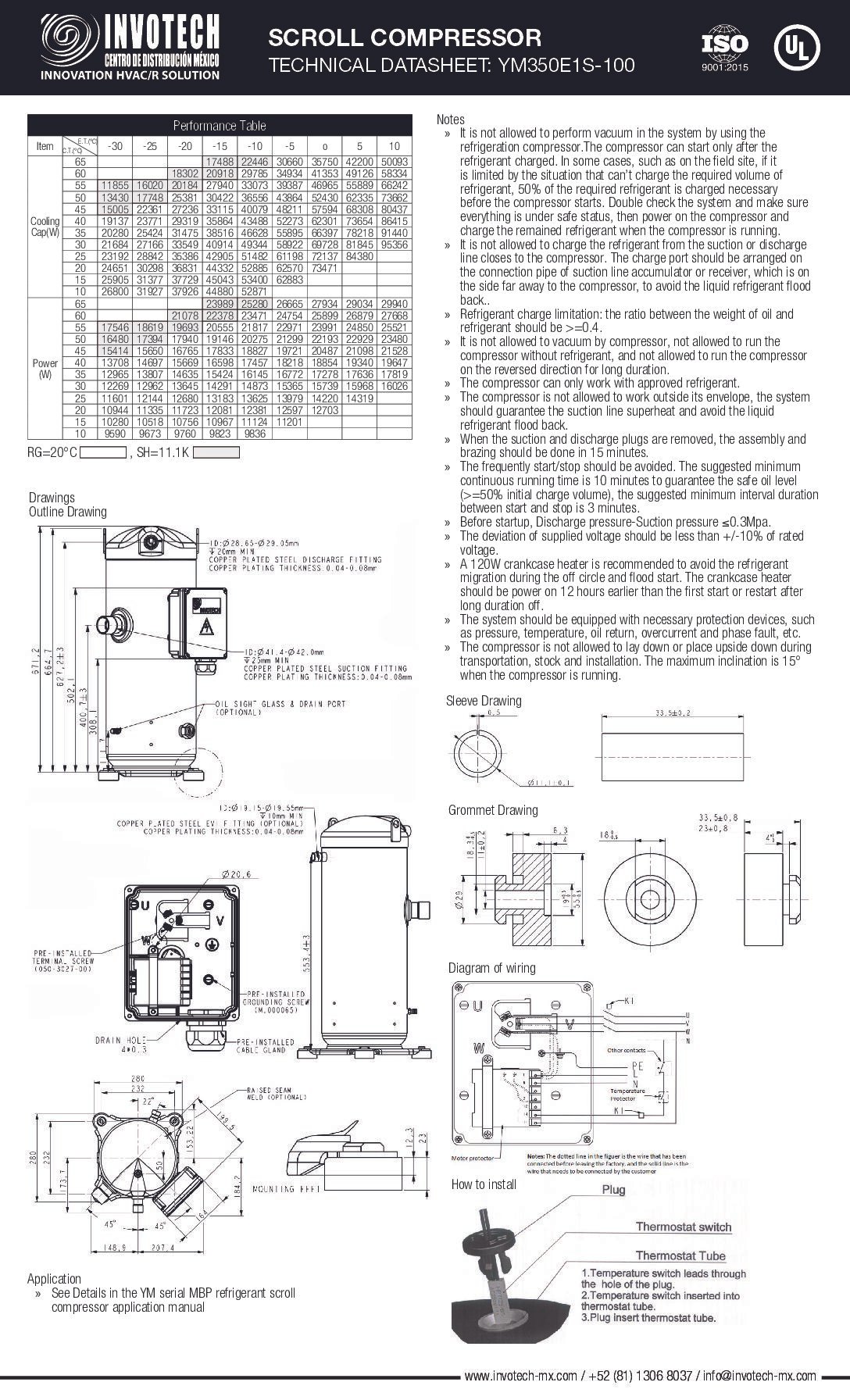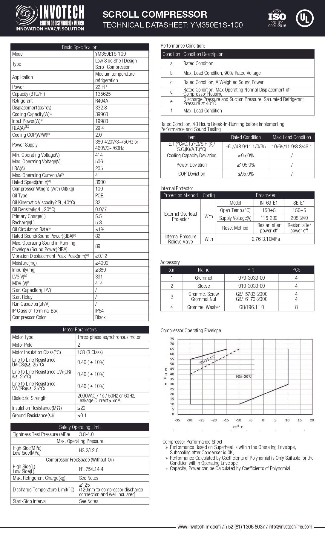 COMPRESSOR SCROLL YM350E1S-100 20HP-140,000 BTU/HR MED TEMP 460/3/60. VALVULA ROTALOCK INCLUIDA.
