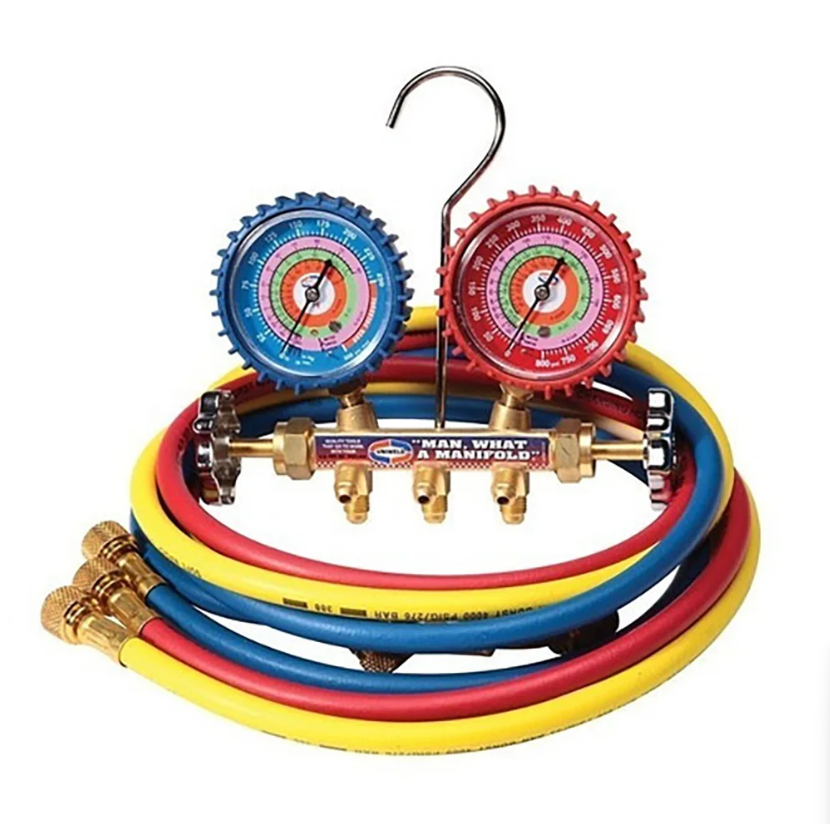 El Juego Manómetro de 2.5 pulgadas con manguera de 3 pulgadas es una herramienta esencial para técnicos y profesionales en el campo de la refrigeración y aire acondicionado. Diseñado para medir la presión de refrigerantes como R22, R404 y R410, este manómetro ofrece precisión y durabilidad.