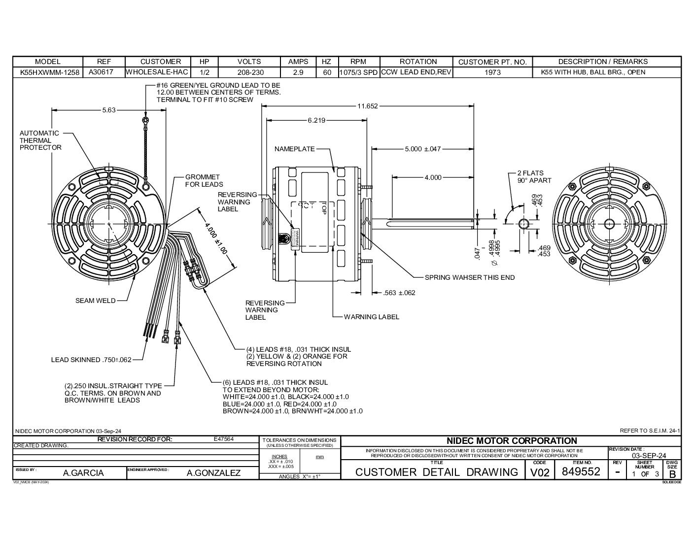 MOTOR MODELO 1973 1/2HP 208-230V/1/60