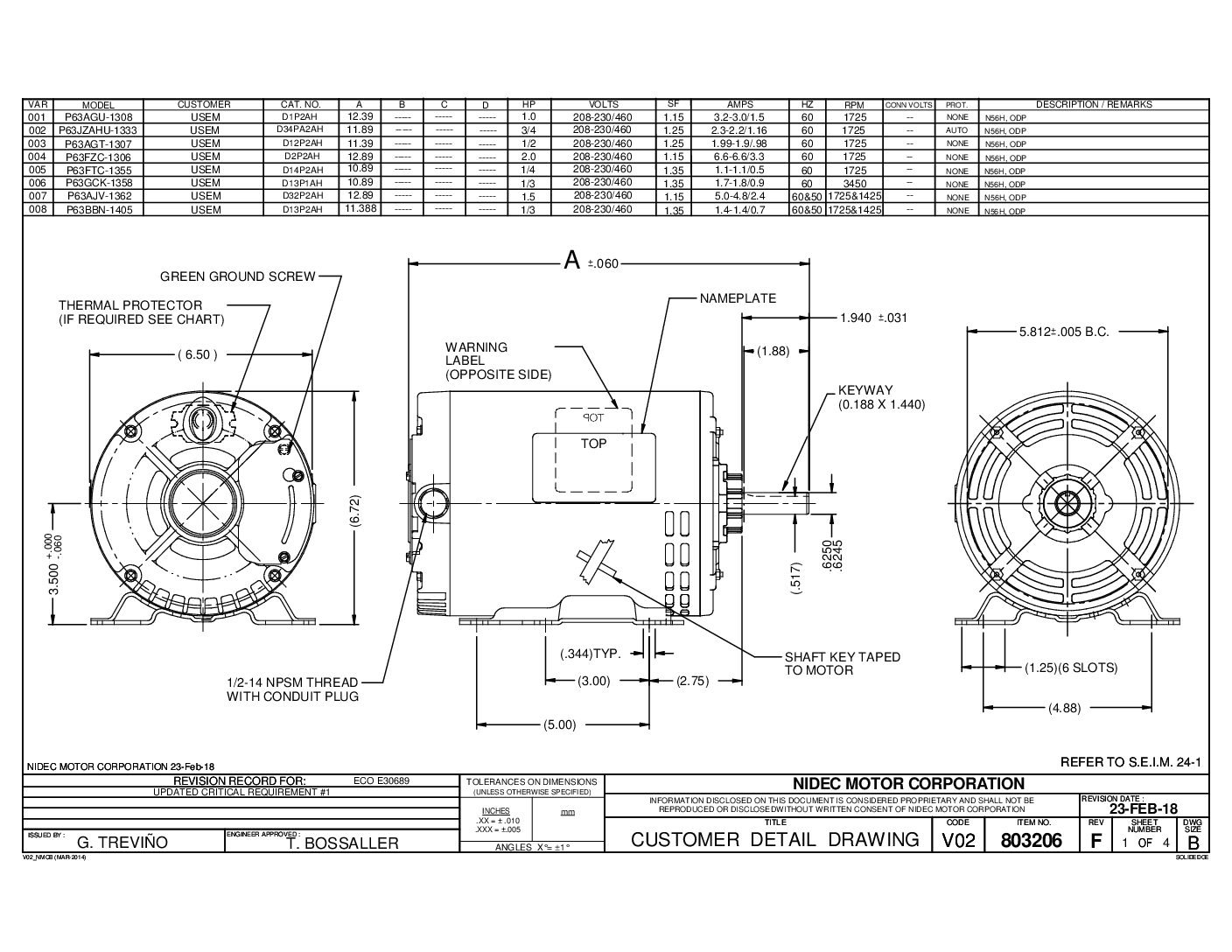 | VOLTS | 208-230/460 V | PESO EN LIBRAS | 33.33 |