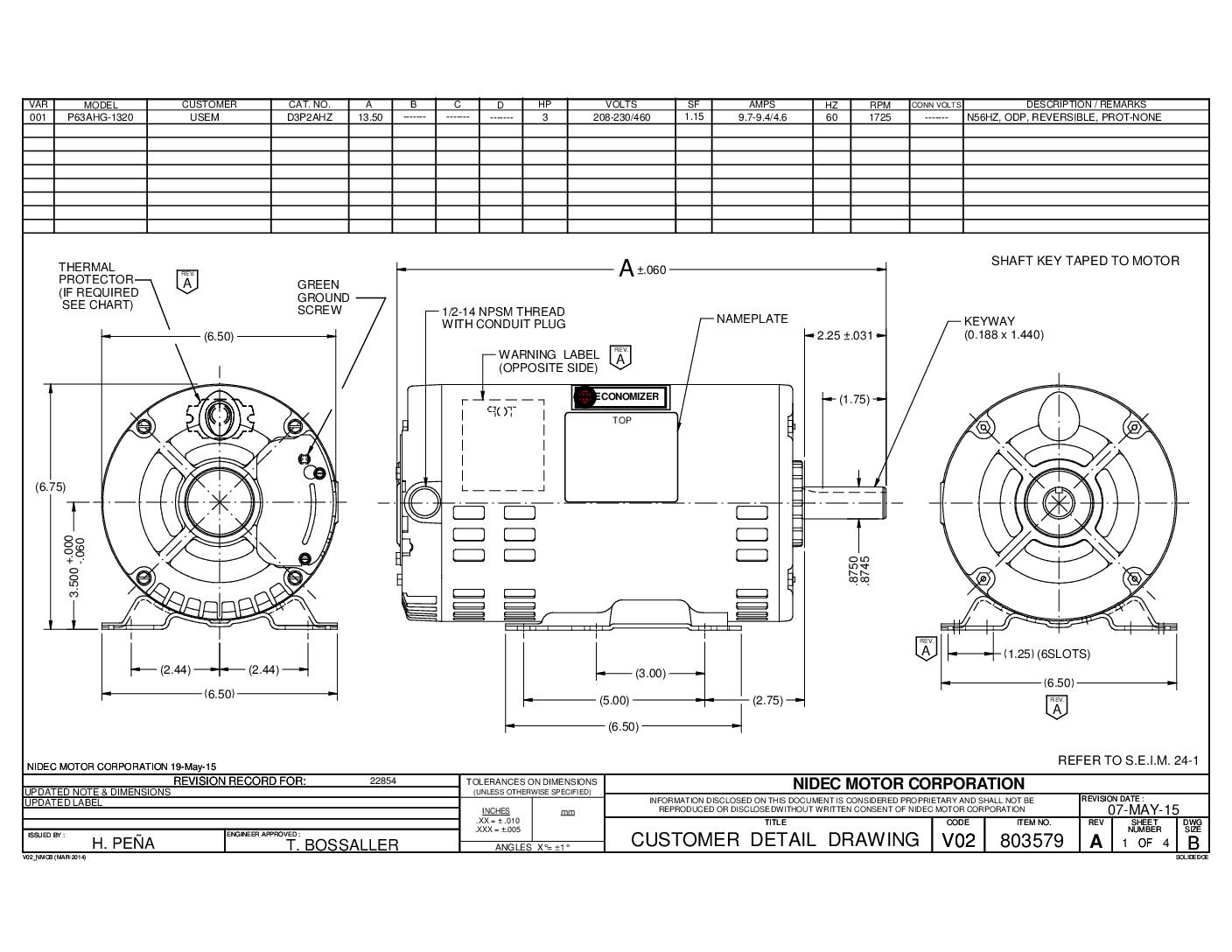 MOTOR MODELO D3P2AHZ 3 HP 208-230/460/3/60